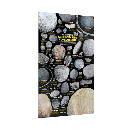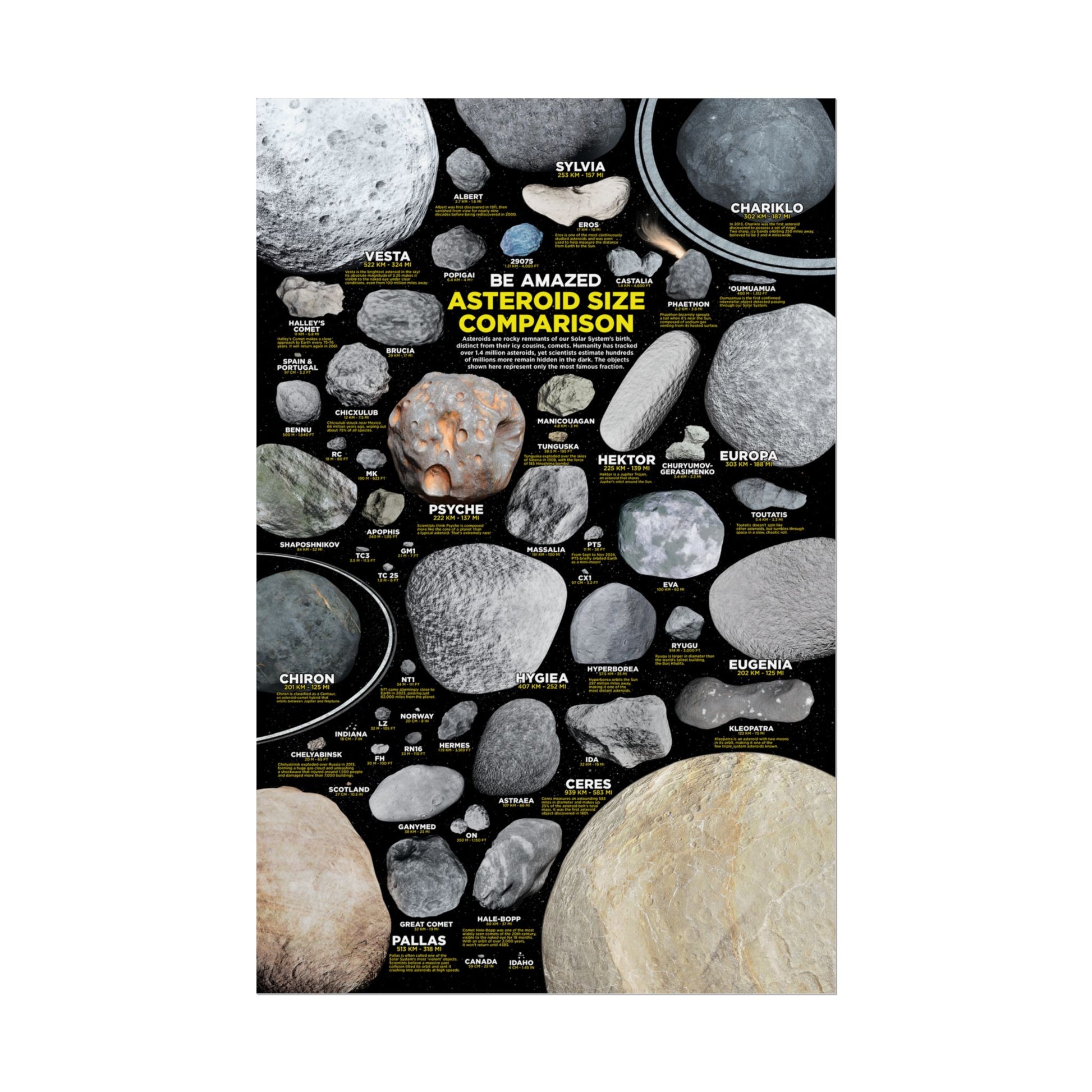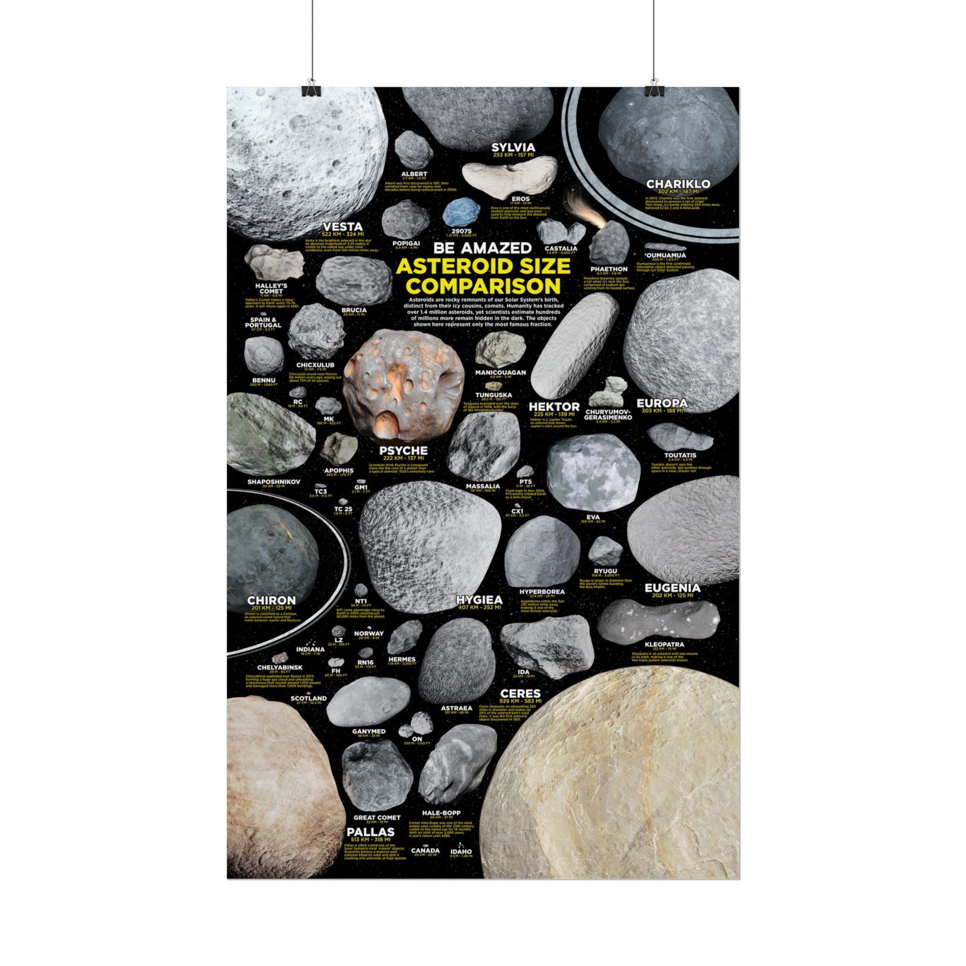 Here's a scientifically accurate poster comparing the sizes of all remarkable asteroids! Beautifully printed in semi-gloss paper (180gsm).