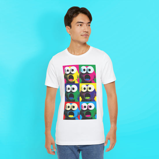 Look very groovy with this stylish Unisex Jersey Short Sleeve Tee featuring our beloved mascot Bartholomew Eggbert Amazed in Pop Art style. The blend of 100% Airlume combed and ring-spun cotton offers a soft, breathable feel! Ideal for friends, family, or anyone who appreciates a good laugh, it makes a fantastic gift!