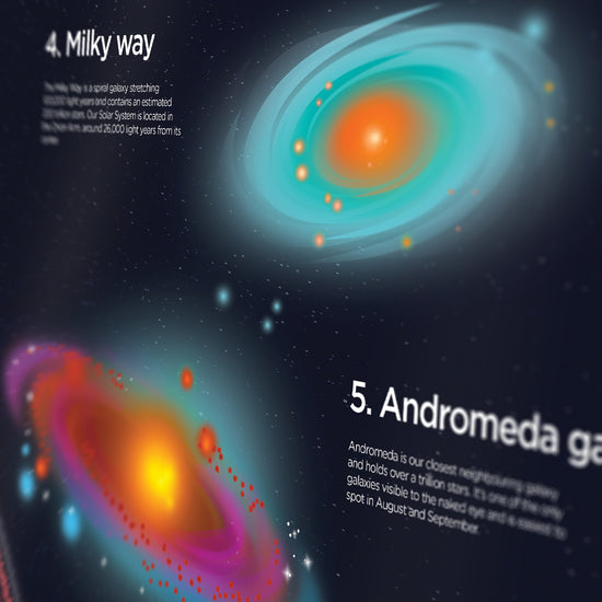 Our map of the observable universe will launch you straight into outer space, where you’ll discover ginormous stars, deadly black holes, and faraway superclusters, up to the very edges of the universe itself. Fill up your own space with this poster and be amazed at how big the universe really is! Beautifully printed in semi-glossy paper (180gsm).