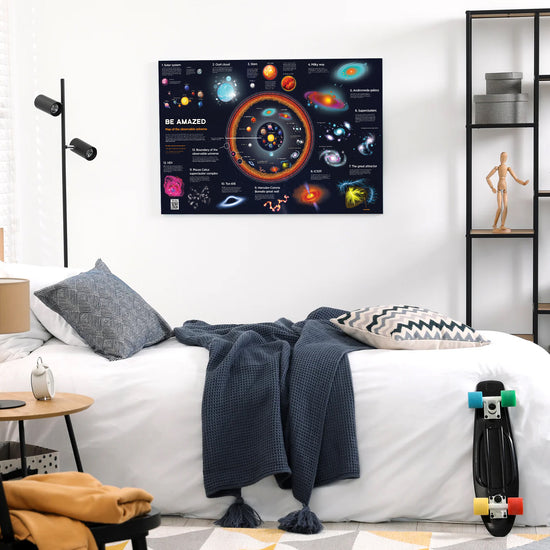 Our hand-crafted map of the observable universe is the perfect addition to any room. This immersive poster lets you dive deep into the cosmos and explore the vastness of space!