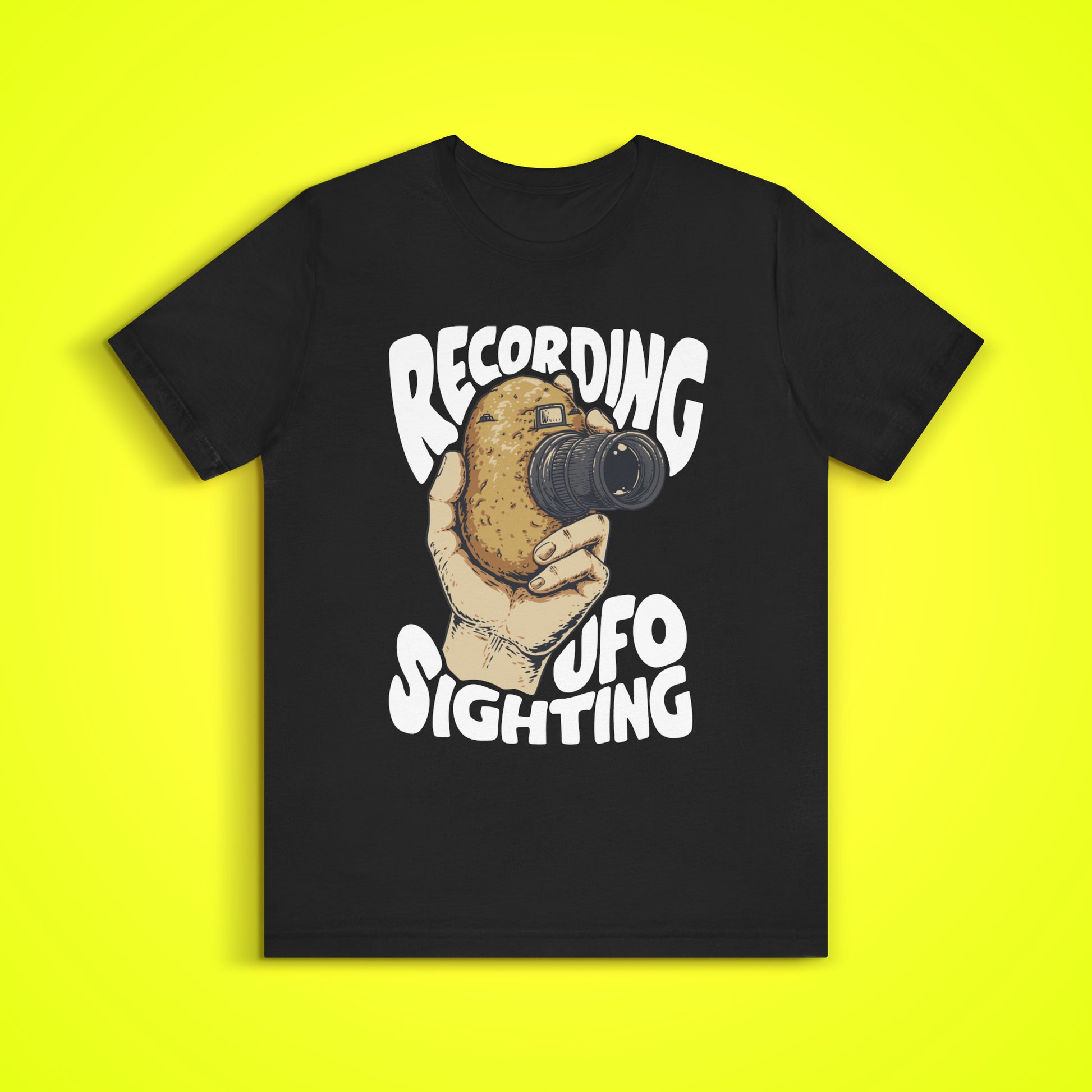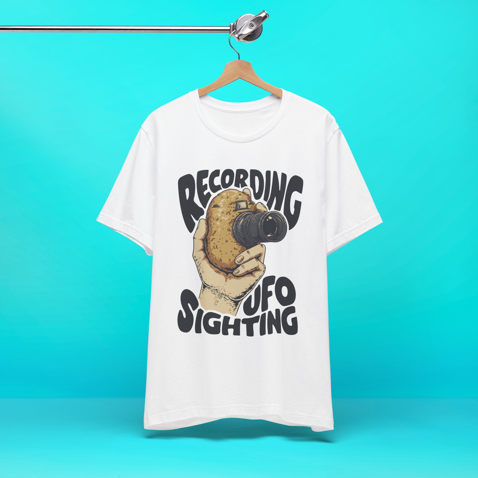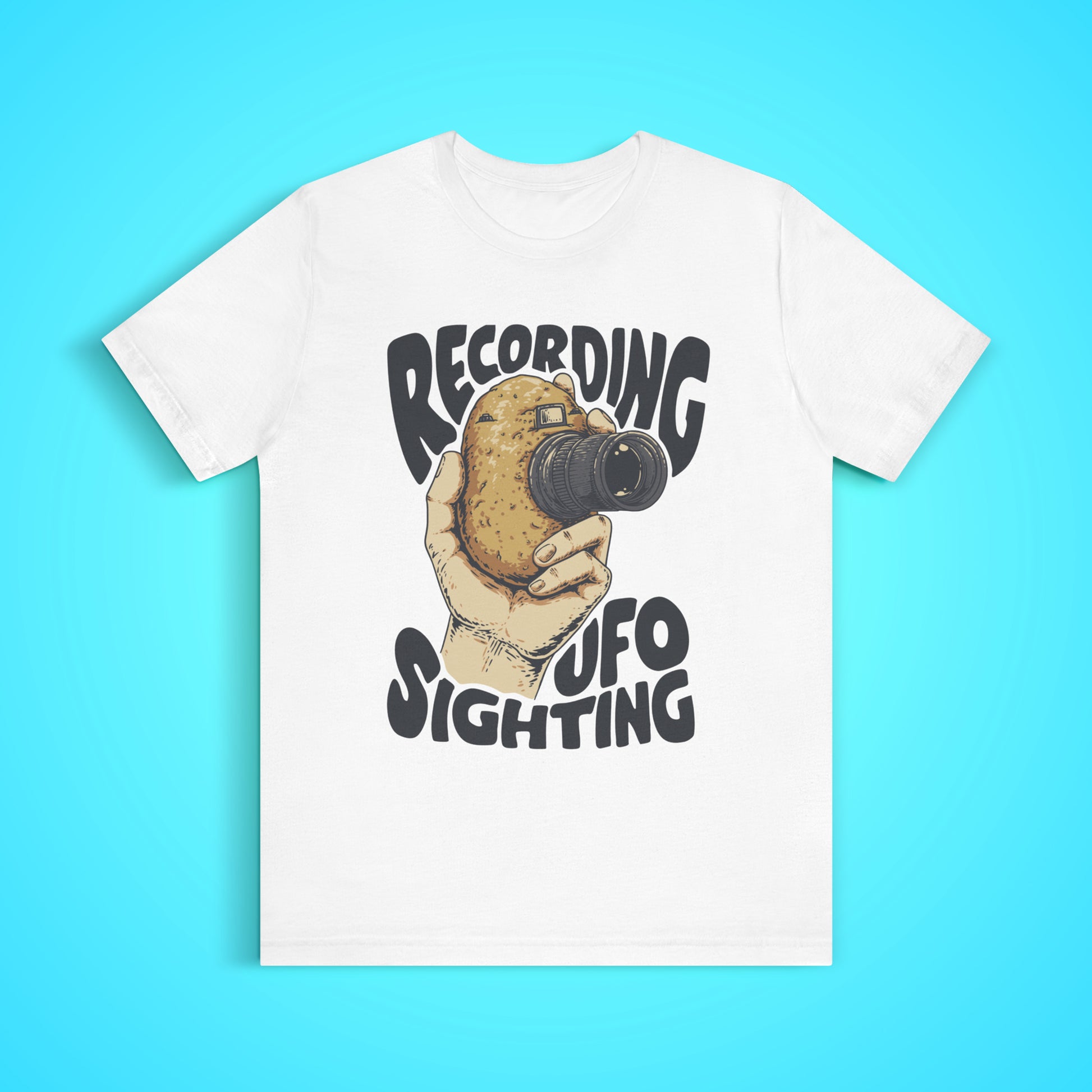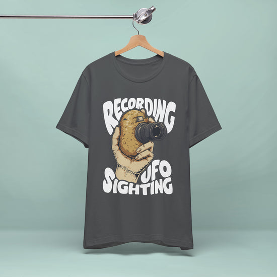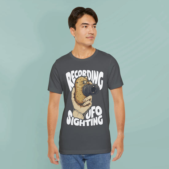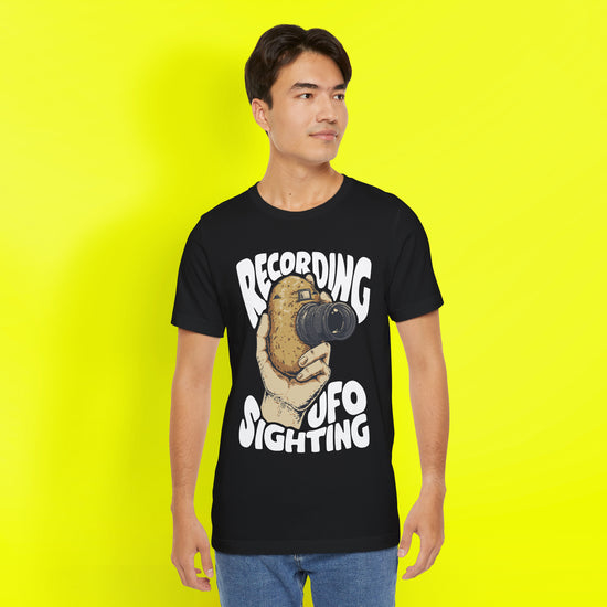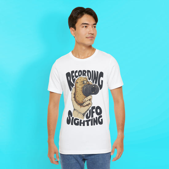 If you always wondered why every UFO sighting is filmed with potato cameras, you'll need this Unisex Jersey Short Sleeve Tee. The blend of 100% Airlume combed and ring-spun cotton offers a soft, breathable feel! Ideal for friends, family, or anyone who appreciates a good laugh, it makes a fantastic gift!