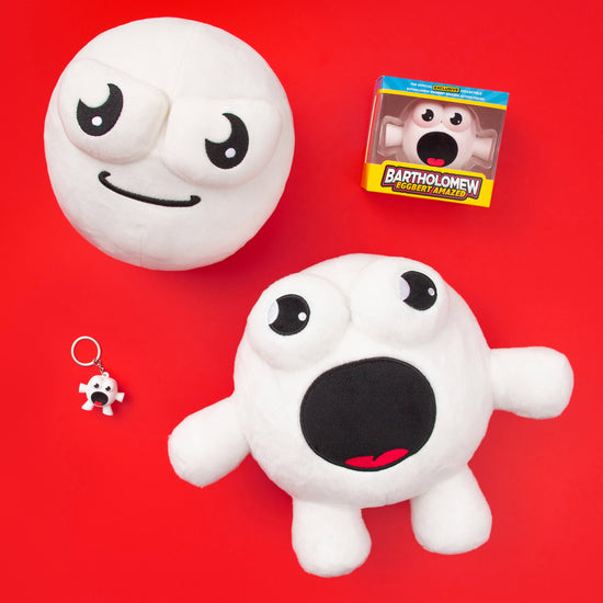 The Ultimate Bundle features the Bartholomew Eggbert Amazed Plushie, the Plushie Ball, the Bartholomew figurine, and the keyring.